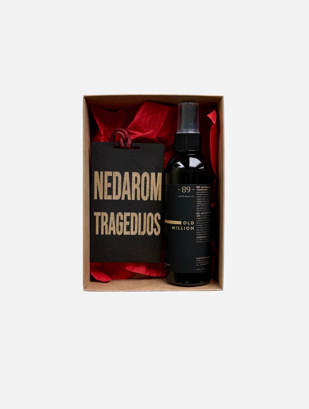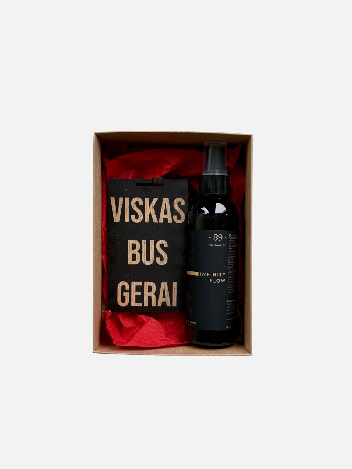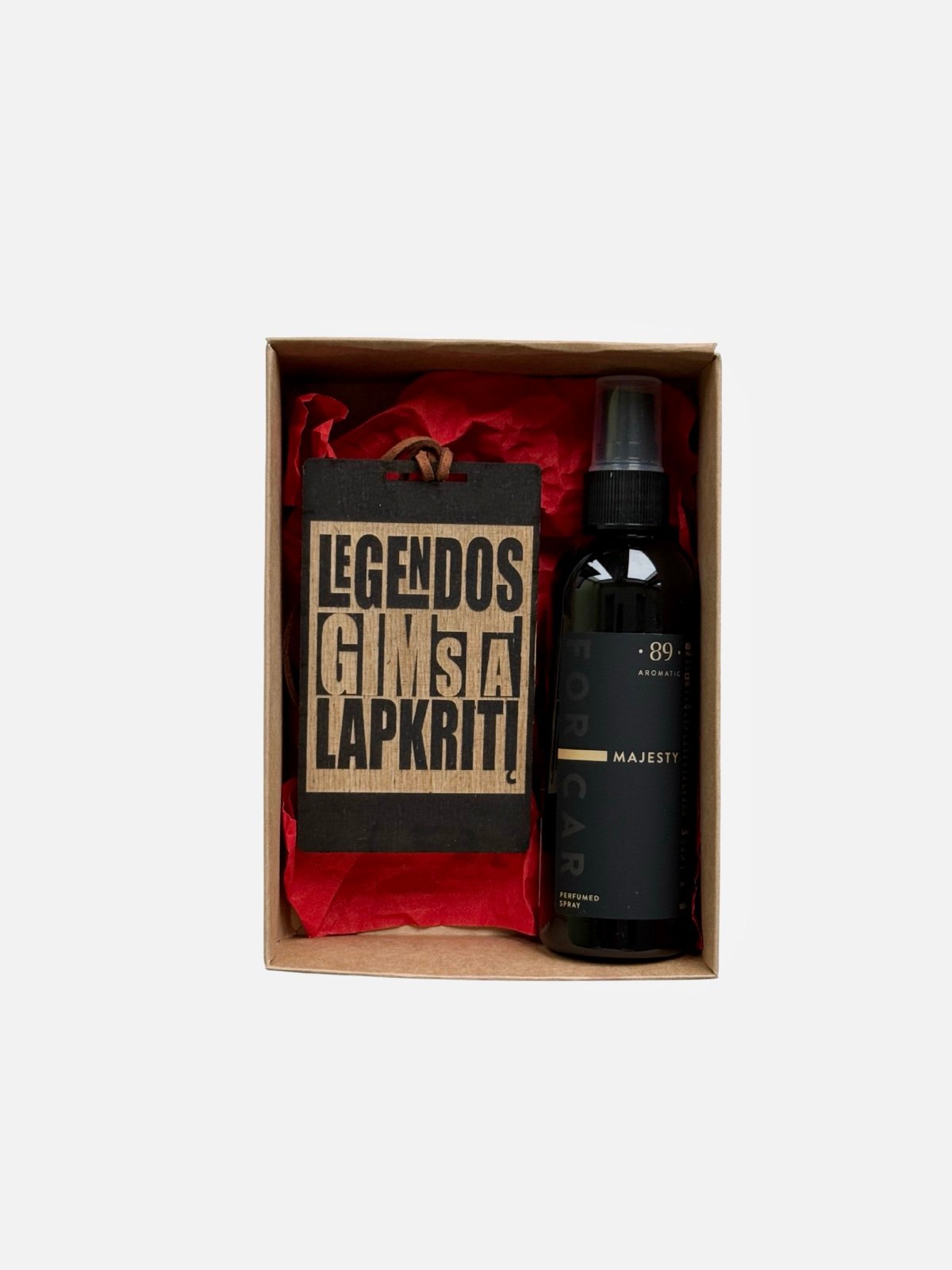 Exclusive car fragrance set with an engraved wooden tag. The set includes a pleasantly scented spray and a wooden fragrance tag made in our cozy workshop, featuring fun and inspiring engraved messages.