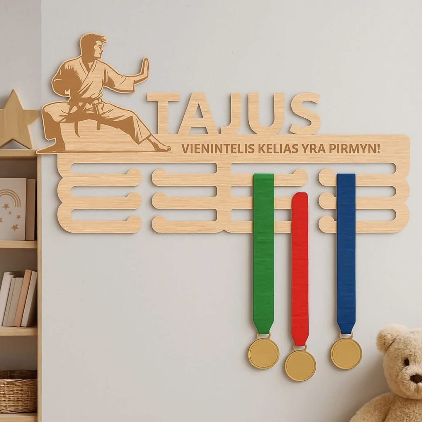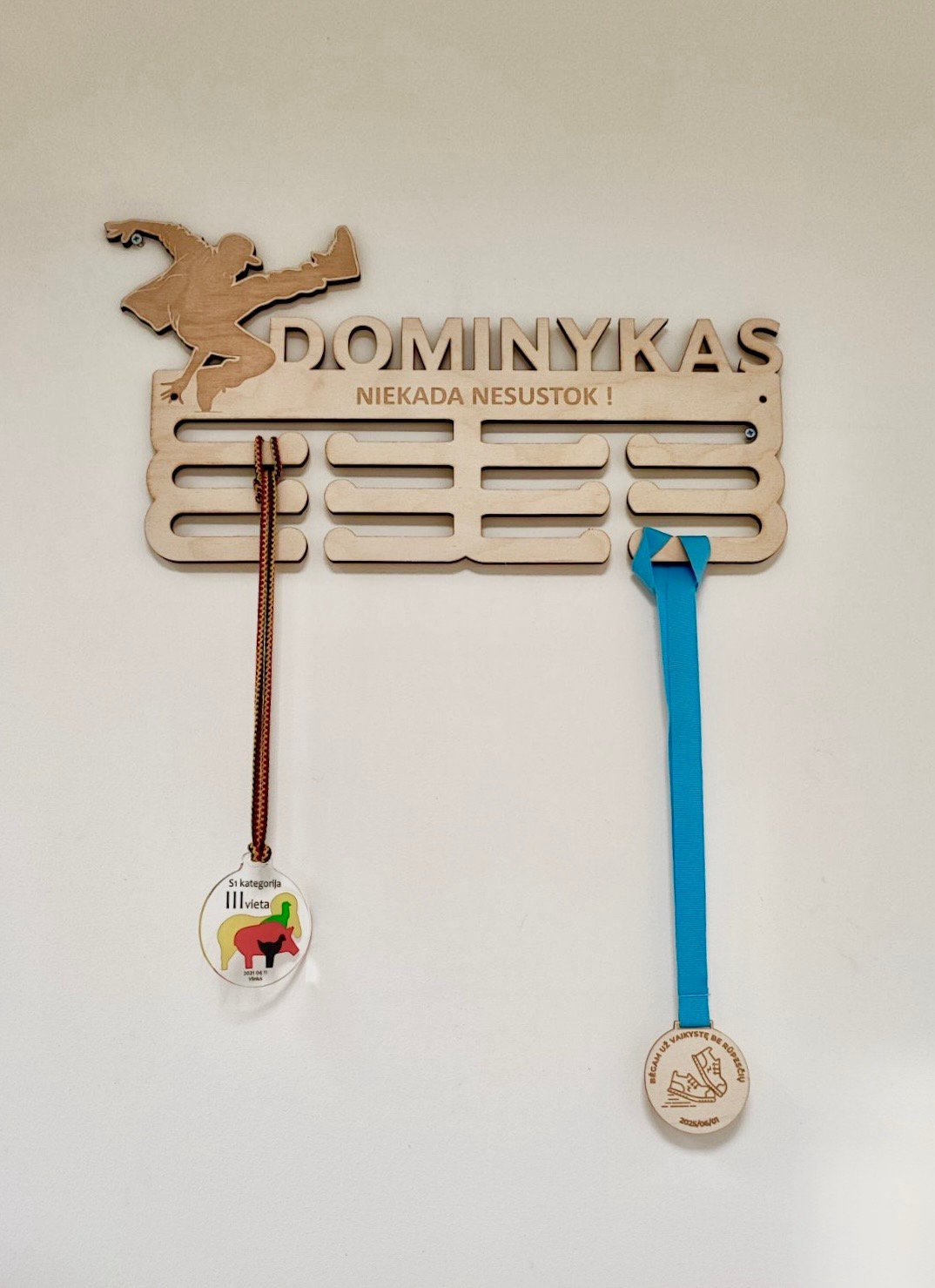 Personalized wooden medal hanger – a perfect gift, ideal for children’s and teenagers’ collections of sports, art, academic, or other achievement medals. The inspiring inscription motivates them to reach even higher!