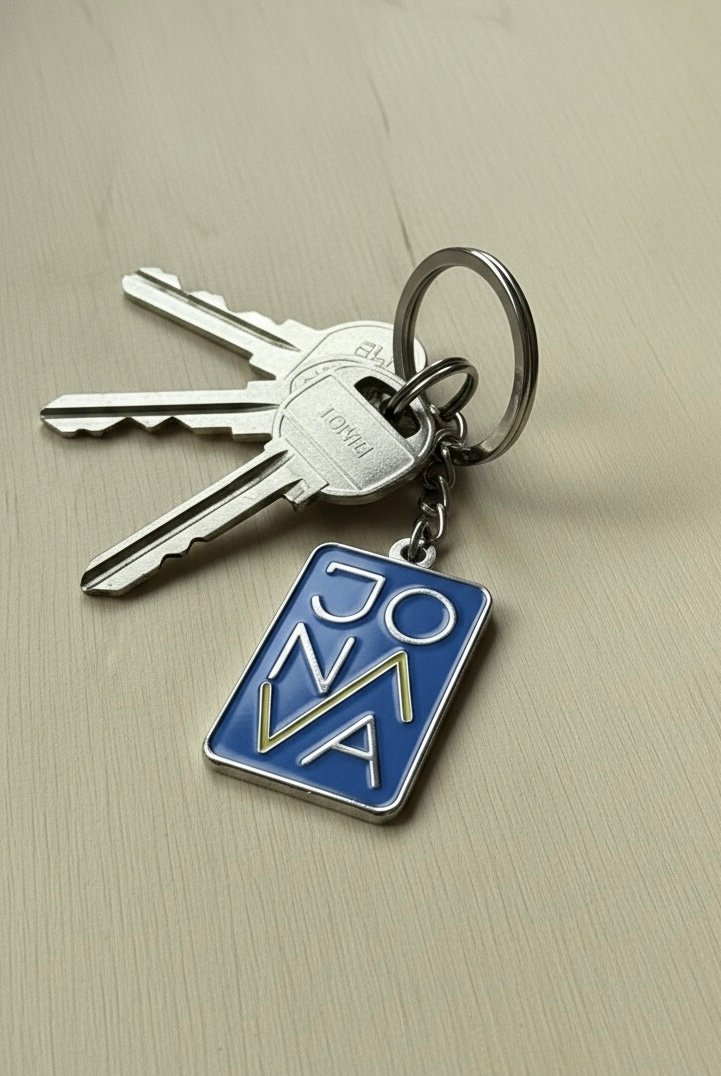 Stylish and compact keychain with the inscription "JONAVA" – a perfect choice as a souvenir for city visitors or locals.