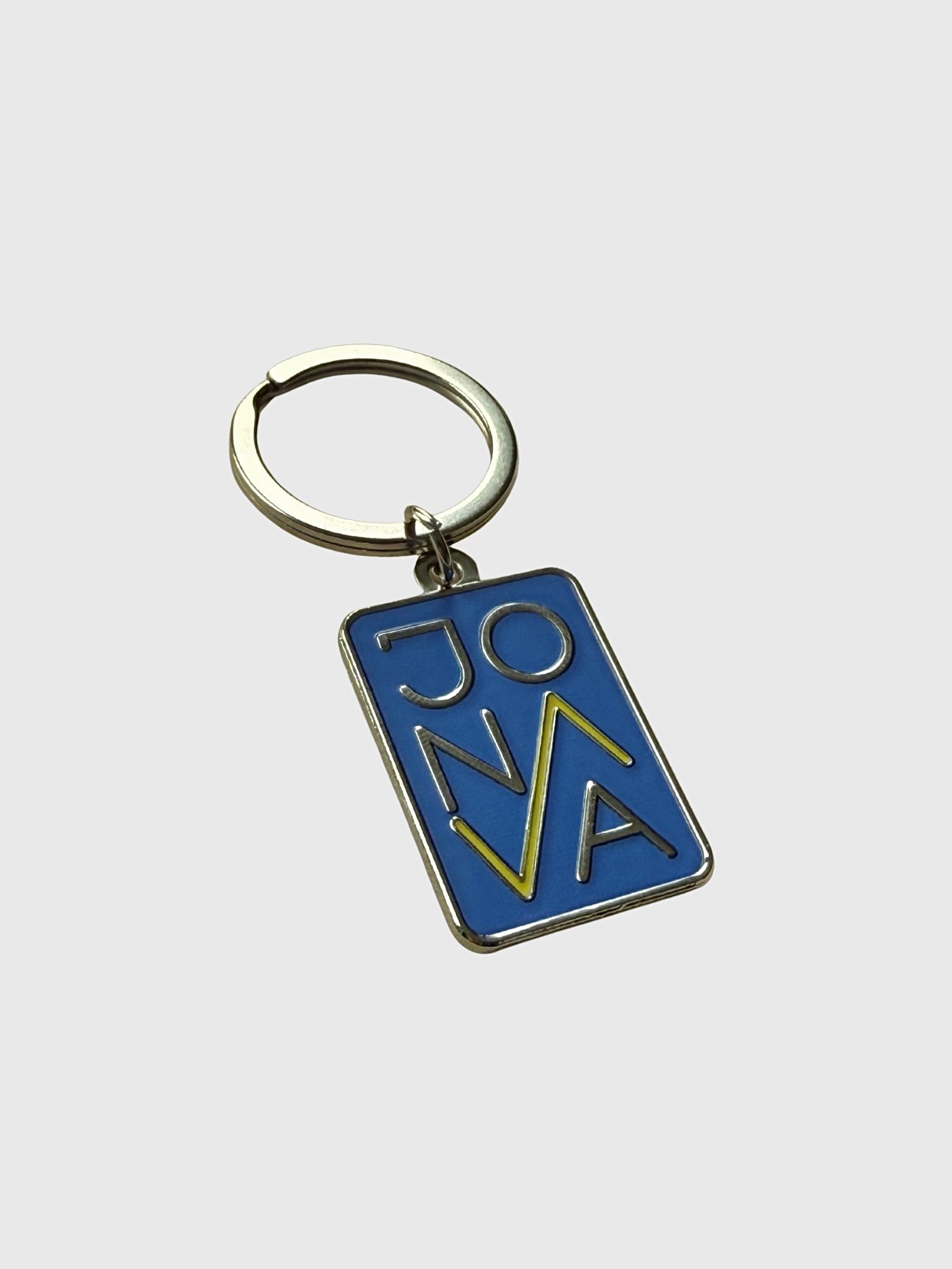 Stylish keychain with the inscription "JONAVA", made of nickel and coated with enamel. Compact, durable, and perfect as a souvenir or gift for city visitors or devoted locals of Jonava.