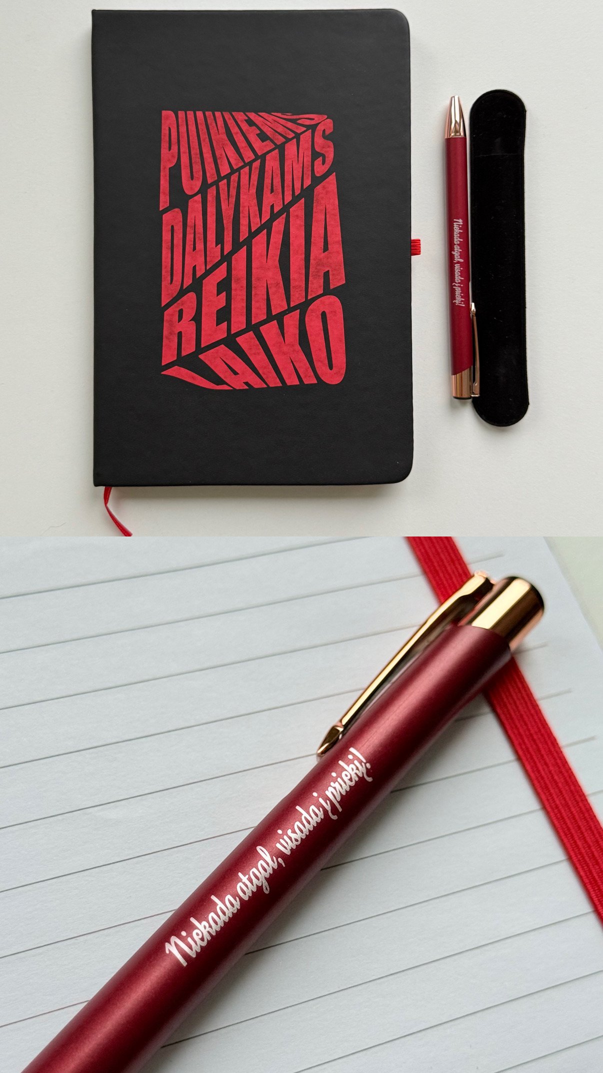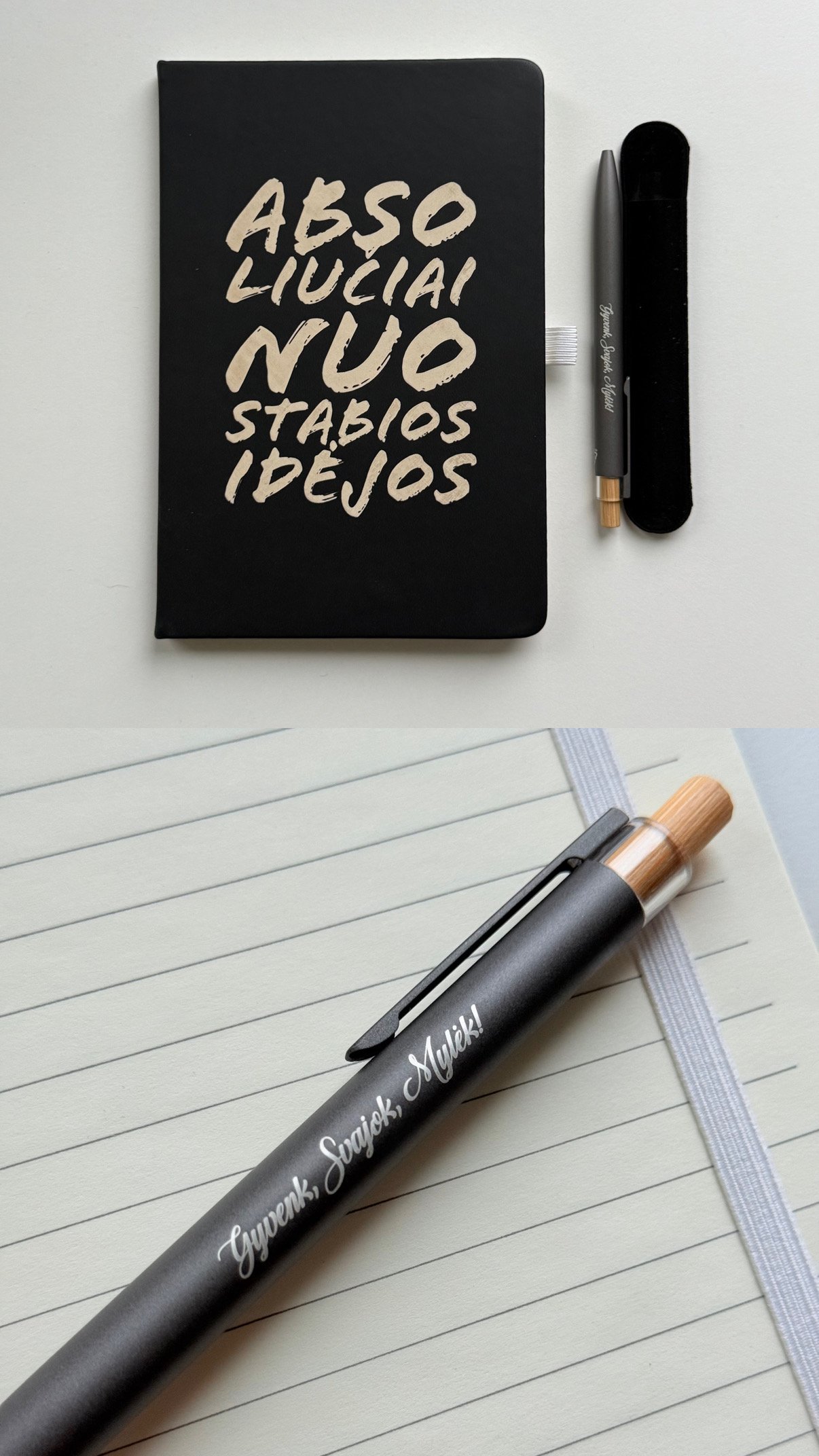 These notebook and engraved pen gift sets are designed for people who love to plan, dream, and capture meaningful thoughts on paper. Each inscription on the notebook and every engraved phrase on the pen is added in our workshop in Lithuania, ensuring not only quality but also uniqueness.