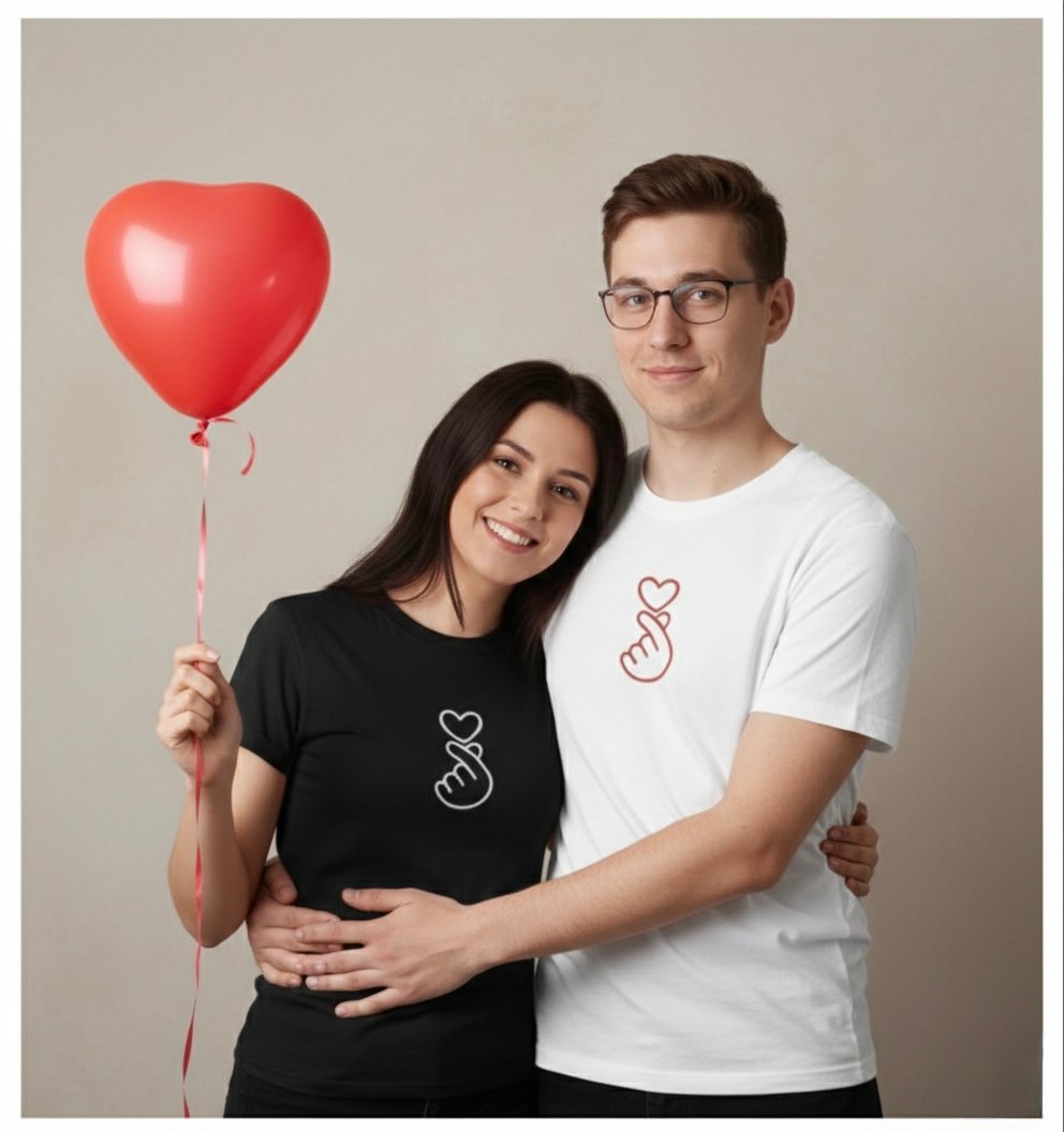 Minimalistiniai marškinėliai su širdies logotipu simbolizuoja paprastumą ir meilę, romantiką ir draugiškumą, o išlaikyta estetika tinka tiek kasdieniams, tiek šventiniams deriniams.